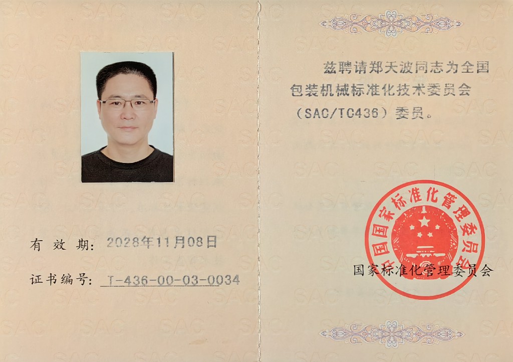 歐亞輕工董事長(zhǎng)、教授級(jí)工程師鄭天波被國(guó)家標(biāo)準(zhǔn)化管理委員會(huì)聘為技術(shù)委委員,雖然是紙漿模塑設(shè)備領(lǐng)域唯一的委員,但紙漿模塑領(lǐng)域的專家第一次進(jìn)入國(guó)標(biāo)委,標(biāo)志著紙漿模塑行業(yè)越來越受到重視。