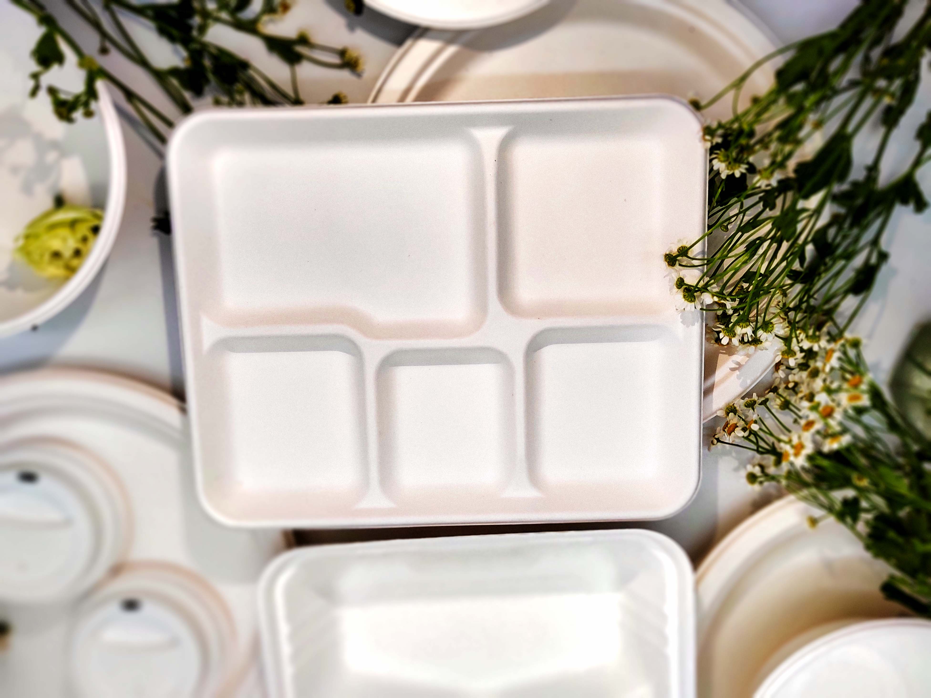 泰國(guó)工廠大量現(xiàn)貨供應(yīng):紙漿模塑餐具;5格盤 1,名稱:5格盤。