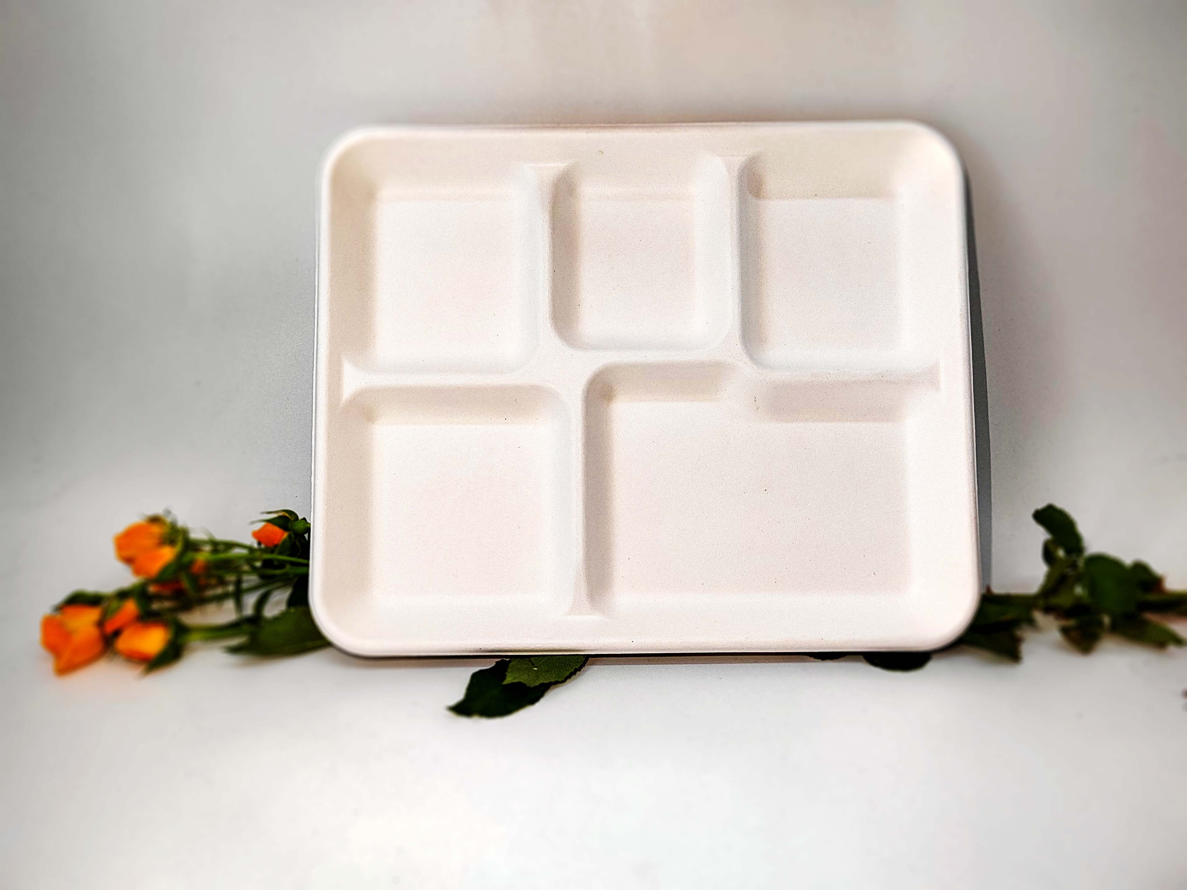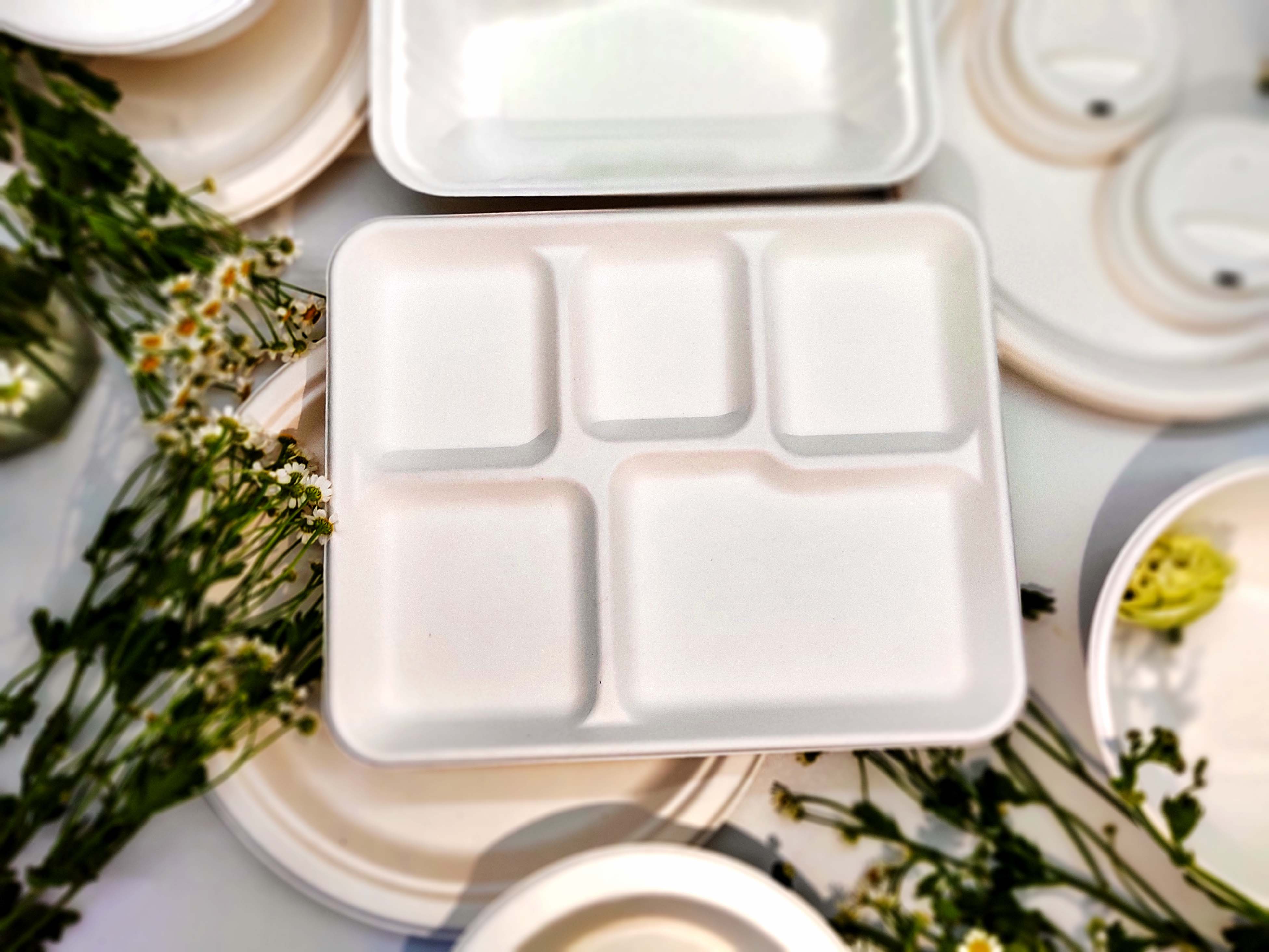 泰國(guó)工廠大量現(xiàn)貨供應(yīng):紙漿模塑餐具;5格盤(pán)